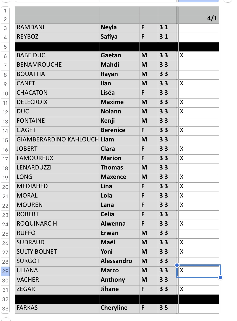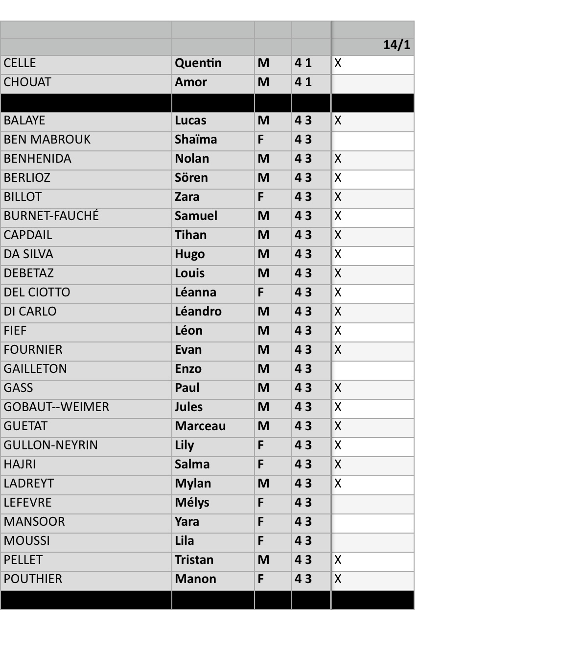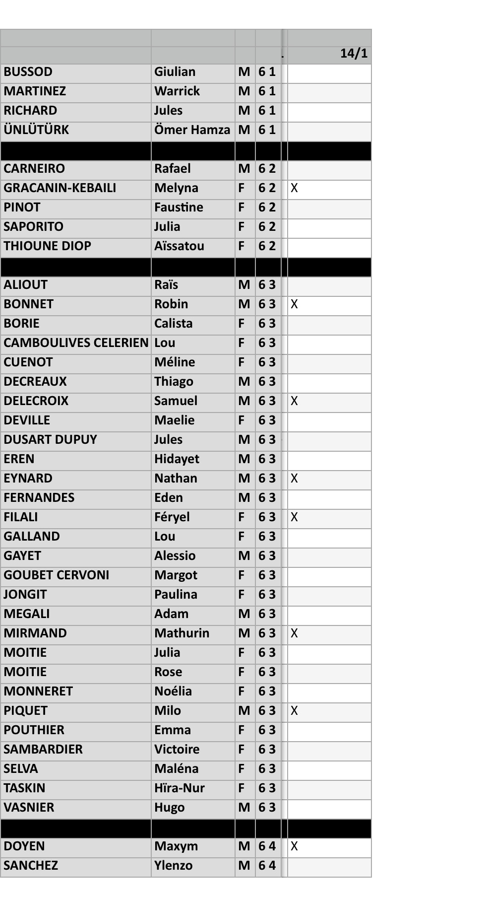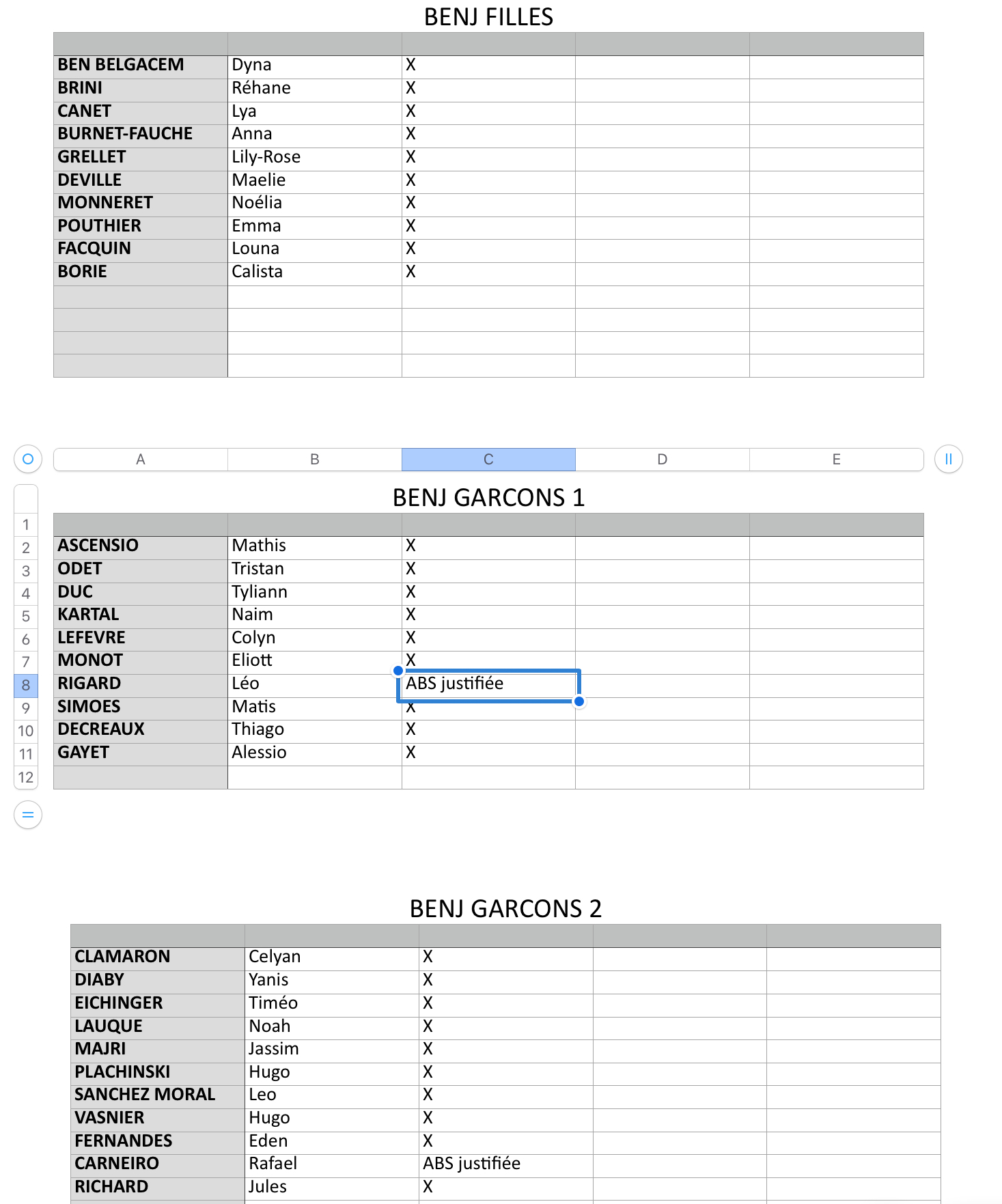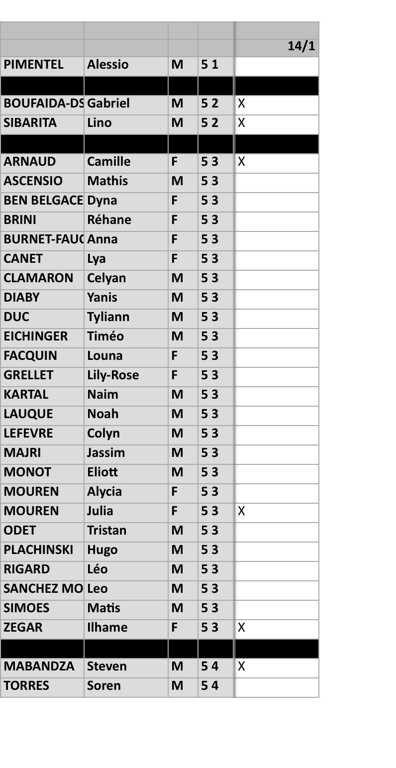 EN PIÈCE JOINTE, l’appel des Equipes en match, et de l’entraînement.